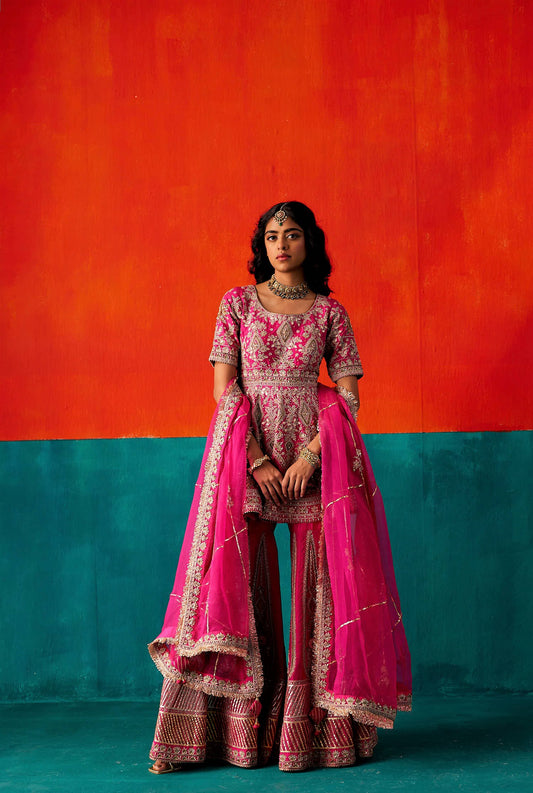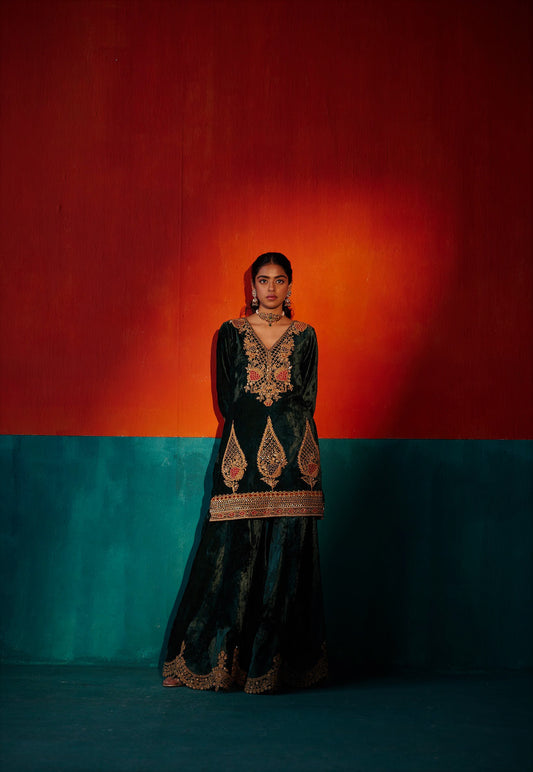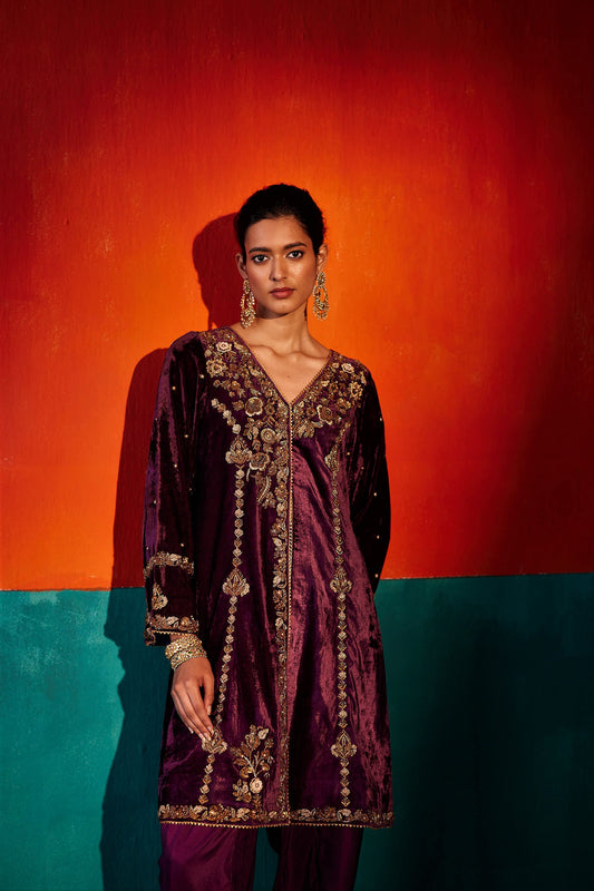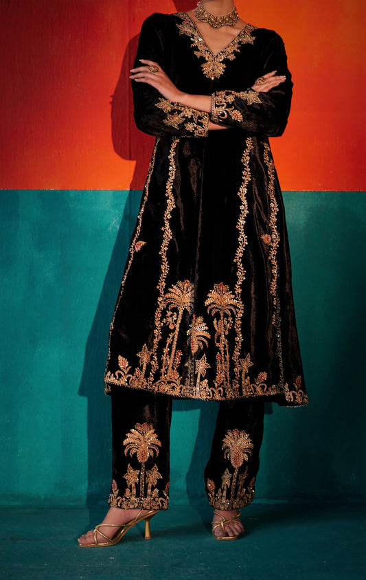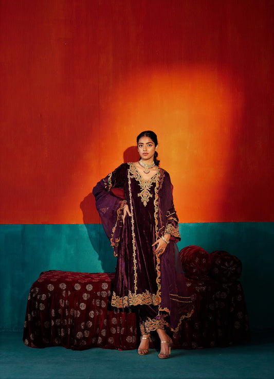 Kasmira ; Kashmir, The Collection is inspired by the rich heritage and landscapes of Kashmir, featuring our signature thread and zardosi handcraft on luxurious silk & velvets.